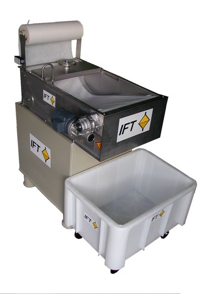 | Beschreibung | Die zu reinigende Flüssigkeit wird von oben auf den Bandfilter aufgegeben. Die Flüssigkeit dringt durch das, auf dem Bandfilter aufliegende Filtervlies / Endlos-Filterband. Die Verunreinigungen verbleiben auf der Oberfläche des Filterpapiers. Infolge der zurückgehaltenen Partikel steigt der Filtersee an. Der Schwimmerschalter sorgt für einen automatischen Vorschub des Filterbandes. Der Filtersee sinkt wieder. Funktionsweise des Bandfilters | |